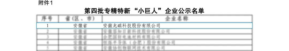 近日,經(jīng)國家工信部統(tǒng)一審核后,安徽省經(jīng)信廳公布了第四批專精特新“小巨人”企業(yè)名單,公司憑借在磁性材料領域的深耕與積累,榮獲國家級專精特新“小巨人”企業(yè)稱號。